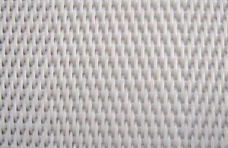 濃縮壓濾一體機(jī)主要利用了濾帶能把水分過濾掉,而把污泥截留到濾帶上的原理進(jìn)行的。濾帶是用高強(qiáng)度的聚酯和尼龍材料的絲線編制而成,這些材料的絲線通過特殊的編織方法做成濾帶后,在高壓拉拽的作用下能保持不變形,下面是一個(gè)濾帶的截圖,水分正是通過濾帶編織的絲線之間的縫隙流走的。