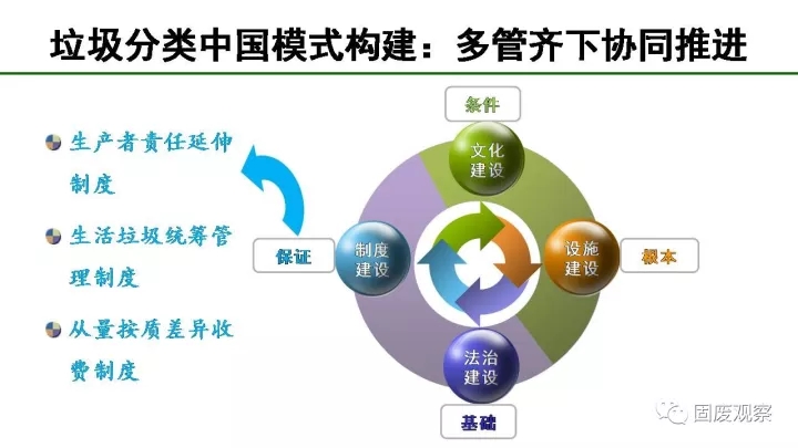 最后我們要多管齊下協(xié)同推進(jìn),我們要以法制建設(shè)為基礎(chǔ),以文化建設(shè)為條件,以制度建設(shè)為保證,以設(shè)施建設(shè)為根本。我也提出了三個制度去撬動垃圾分類工作,包括生產(chǎn)者責(zé)任延伸制度、生活垃圾統(tǒng)籌管理制度、從量按質(zhì)差異收費(fèi)制度。通過精巧的制度設(shè)計(jì),可以很好地撬動垃圾分類工作。