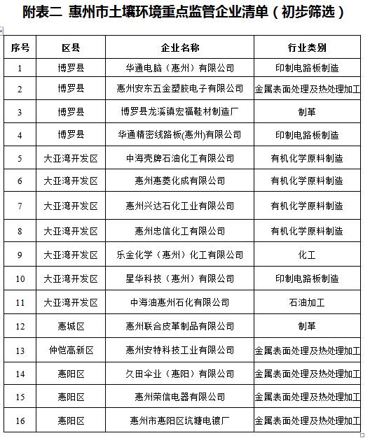 (一)強(qiáng)化涉土壤污染產(chǎn)業(yè)空間布局管控。嚴(yán)格實(shí)施《惠州市土壤污染防治行動(dòng)計(jì)劃工作方案》,執(zhí)行相關(guān)行業(yè)企業(yè)布局選址要求,禁止在居民區(qū)、學(xué)校、醫(yī)療和養(yǎng)老機(jī)構(gòu)等周邊新建有色金屬冶煉、焦化等行業(yè)企業(yè)。結(jié)合區(qū)域功能定位、周邊居民區(qū)等敏感對(duì)象的分布以及土壤污染防治需要,科學(xué)布局生活垃圾處理、危險(xiǎn)廢物處理處置、廢舊資源再生利用等設(shè)施和場(chǎng)所,確定合理的防護(hù)距離。優(yōu)化并完善行業(yè)發(fā)展布局。鼓勵(lì)工業(yè)企業(yè)集聚發(fā)展,提高土地節(jié)約集約利用水平,減少土壤污染。結(jié)合推進(jìn)新型城鎮(zhèn)化、產(chǎn)業(yè)結(jié)構(gòu)調(diào)整、淘汰落后產(chǎn)能、化解過(guò)剩產(chǎn)能等,加快推進(jìn)環(huán)境敏感區(qū)和城市主城區(qū)涉重金屬企業(yè)搬遷或關(guān)閉,2017年完成城市建成區(qū)內(nèi)現(xiàn)有有色金屬冶煉、鉛酸電池等涉重金屬企業(yè)的有序搬遷改造或依法關(guān)閉。