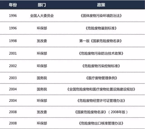 近年來(lái)危廢相關(guān)法規(guī)政策