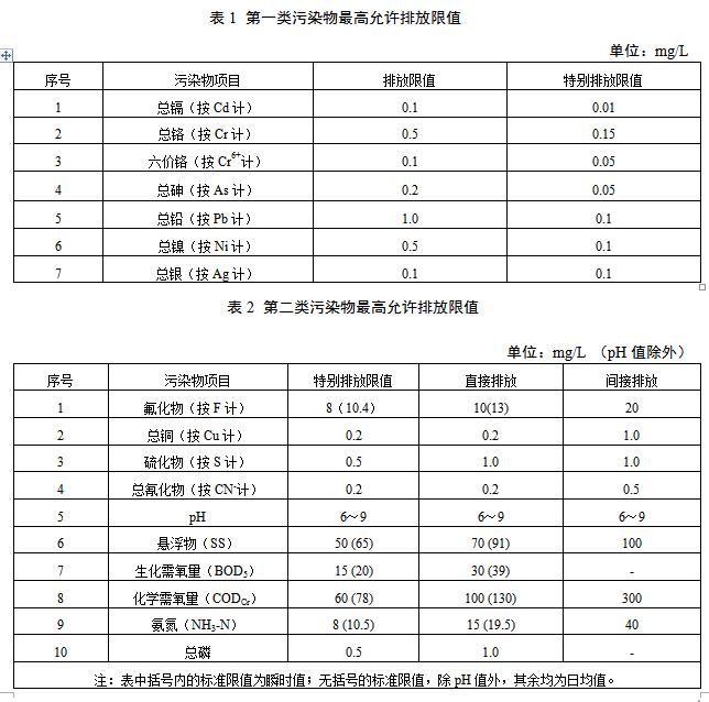 半導體企業(yè)的水污染物排放執(zhí)行表1和表2的規(guī)定。