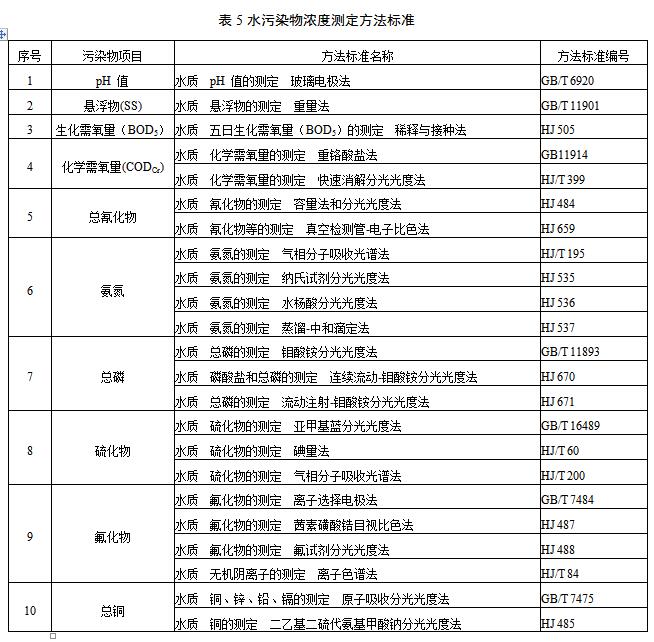 5.2.2對企業(yè)排放水污染物濃度的測定采用表5所列的方法標準。