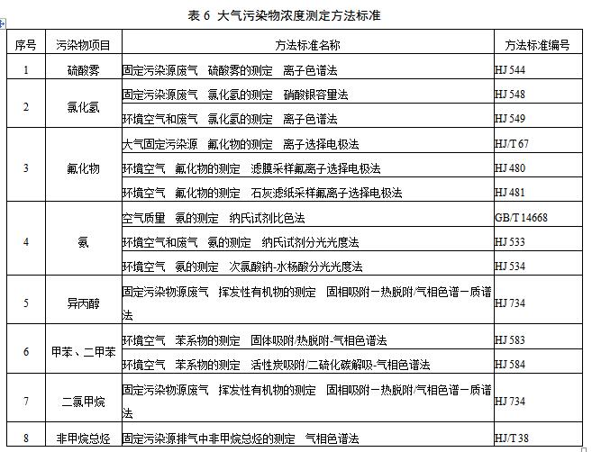 5.3.2對企業(yè)排放大氣污染物濃度的測定采用表6所列的方法標準。