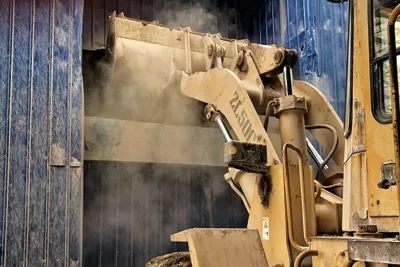 環(huán)衛(wèi)作業(yè)車輛直接把垃圾卸到分揀平臺,專用爪機(jī)把床墊、沙發(fā)等大件垃圾分離,挖機(jī)喂料。