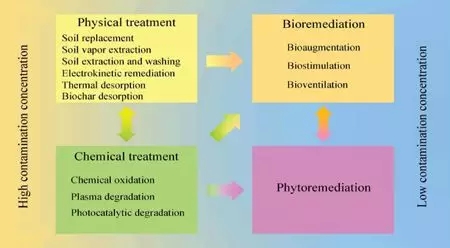 物理修復方法是利用物理原理和特定工程技術,將土壤中的污染物移除或者轉(zhuǎn)化為無害形態(tài)。其主 要包括土壤置換、氣相抽提、萃取洗脫、電動修復、熱脫附和生物炭吸附等。