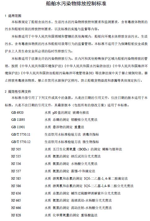 為貫徹《中華人民共和國環(huán)境保護法》《中華人民共和國水污染防治法》《中華人民共和國海洋環(huán)境保護法》《中華人民共和國防治船舶污染海洋環(huán)境管理條例》等法律法規(guī),保護環(huán)境,防治污染,促進船舶水污染物排放控制技術(shù)的進步,推進船舶污染物接收與處理設(shè)施建設(shè),推動船舶及相關(guān)裝置制造業(yè)綠色發(fā)展,制定本標準。