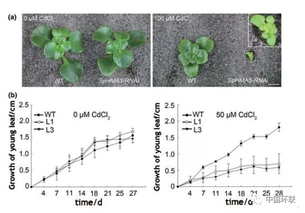 利用超積累植物修復重金屬污染土壤一直是研究學者們關(guān)注的焦點。區(qū)別于普通植物,超積累植物地上部可富集高濃度的重金屬。其可能作用機制為:超積累植物的根際對土壤重金屬活化效應(yīng);超積累植物對重金屬具有快速的吸收轉(zhuǎn)運體系;超積累植物對重金屬具有強的解毒儲存能力。浙江大學Hou等對比研究重金屬超積累型和非超積累型植物的根際特征,發(fā)現(xiàn)與非超積累型植物相比,超積累型植物根際具有更為龐大的根系,土壤pH值較低,重金屬有效性高;根際土壤重金屬有效性與超積累植物特異的細菌群落具有顯著相關(guān)性,微生物群落功能分析(PICRUSt)超積累植物根際細菌豐度相對較高,其相應(yīng)的功能與膜運輸和氨基酸代謝相關(guān)。該研究揭示了超積累植物根際特征,尤其是特異的根際細菌群落組成對超積累植物吸收重金屬的作用。除超積累植物特殊的根際效應(yīng)外,其植物本身對重金屬吸收和存儲能力亦是超積累重金屬主要機制。浙江大學Tian等對超積累型和非積累型東南景天對Cd吸收、分布以及細胞水平上耐性進行研究。Cd在非積累型植物葉和莖中維管束中有少量分布,而超積累植物Cd含量高,且不同組織和時間上差異較大;兩種植物在Cd向葉原生質(zhì)運輸?shù)膭恿W上沒有較大差異,但超積累型在Cd的液泡存儲上更為高效。該研究結(jié)果表明相對于快速運輸至薄壁細胞,Cd的液泡高效存貯是東南景天莖中積累Cd的更為重要的機制。超積累植物對重金屬的積累和解毒機制受控于體內(nèi)特有基因表達。中國科學院植物研究所Liu等對鎘鋅超積累植物伴礦景天Cd耐性基因進行研究,發(fā)現(xiàn)伴礦景天體內(nèi)的ATP酶3基因(SpHMA3)對其Cd在體內(nèi)解毒具有重要作用,酵母中外源SpHMA3表達試驗表明其具有Cd專一運輸活性,對Cd敏感而對Zn不敏感,SpHMA3基因在非超積累型景天中超量表達可增加其對Cd的耐性和積累性,但對Zn無效應(yīng)。該研究結(jié)果證實位于液泡膜上的SpHMA3基因?qū)χ参顲d解毒機制起著重要作用,能保持伴礦景天在Cd污染土壤上正常生長(圖5)。