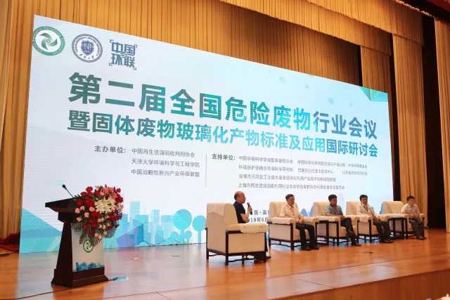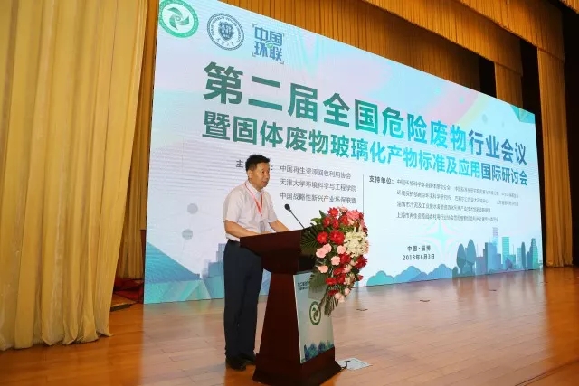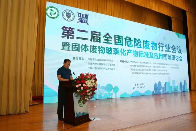 2018年6月3-4日,六五世界環(huán)境日來臨之際,由中國再生資源回收利用協(xié)會、天津大學(xué)環(huán)境科學(xué)與工程學(xué)院和中國戰(zhàn)略性新興產(chǎn)業(yè)環(huán)保聯(lián)盟共同主辦的“第二屆全國危險廢物行業(yè)會議暨固體廢物玻璃化產(chǎn)物標(biāo)準(zhǔn)及應(yīng)用國際研討會”在山東省淄博市隆重舉行。來自全國危險廢物資源化利用與安全處置領(lǐng)域的企業(yè)家、行業(yè)專家、政府主管部門領(lǐng)導(dǎo)和危廢玻璃化處理領(lǐng)域的國內(nèi)外專家及企業(yè)代表,以及來自新華社、中國環(huán)境報、中華合作時報和中國環(huán)聯(lián)網(wǎng)等主流媒體的記者逾400人出席了會議。