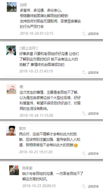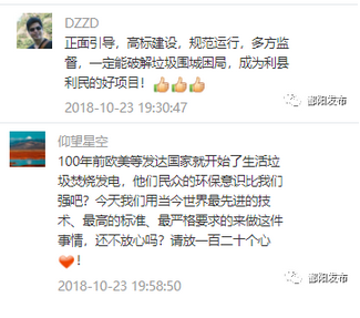 短時間內,《哦!生活垃圾焚燒發(fā)電原來是這么回事!》一文閱讀量突破三萬,可見鄱陽縣社會各界對該項目的廣泛關注。網(wǎng)友的留言中有90%對鄱陽縣建造生活垃圾焚燒發(fā)電廠表示認可、鼓勵。