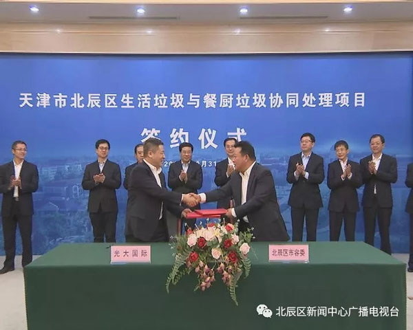 日前,北辰區(qū)與中國光大國際有限公司簽定生活垃圾與餐廚垃圾協(xié)同處理項(xiàng)目。中國光大國際有限公司總裁王天義、副總經(jīng)理胡延國,中國光大銀行天津分行行長陳紹寧,區(qū)委副書記、區(qū)長王寶雨,副區(qū)長胡學(xué)春出席簽約儀式。