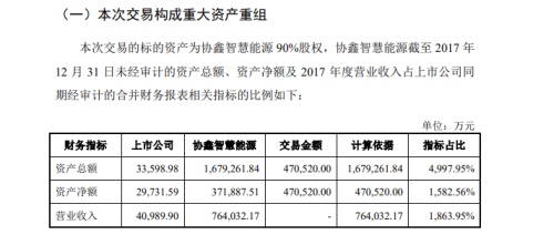 霞客環(huán)保11月5日晚間披露重大資產(chǎn)重組預(yù)案,公司擬通過重大資產(chǎn)置換及發(fā)行股份購買資產(chǎn)的方式,購買協(xié)鑫智慧能源90%股份。其中,公司擬置出資產(chǎn)作價(jià)2.69億元,協(xié)鑫智慧能源90%股份作價(jià)47.05億元,二者差額部分由公司發(fā)行股份購買,此次交易構(gòu)成重組上市。