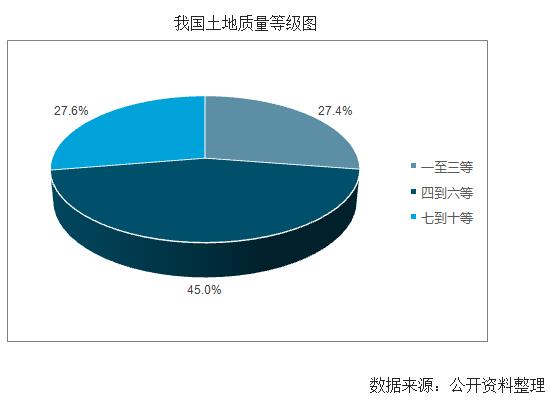 土地污染物超標率為16.1%。2017年,我國整體土地質量等級為5.09,剛剛達到中等水平,其中7到10等的低等地比例達到了27.4%。而且全國所有土地中,遭到侵蝕的土地總面積達到294.9萬平方公里,占我國所有土地面積的30%以上。