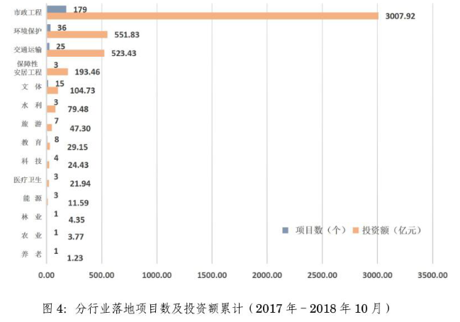 2018年10月,民營企業(yè)以聯(lián)合體牽頭方或者單獨作為社會資本方落地項目3個。2017年至2018年10月累計落地項目114個,占39.45%。