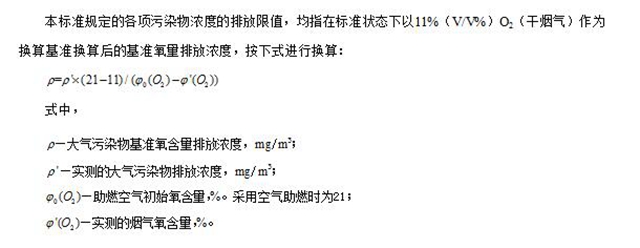 4.3 生產(chǎn)設(shè)施應(yīng)采取合理的措施,不得稀釋排放。在國家未規(guī)定生產(chǎn)設(shè)施單位產(chǎn)品基準(zhǔn)排氣量之前,以實測折標(biāo)準(zhǔn)狀態(tài)下以11%(V/V%)O2(干煙氣)濃度作為判定大氣污染物排放是否達(dá)標(biāo)的依據(jù)。