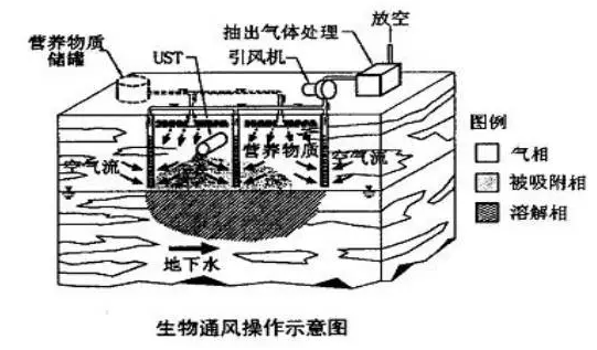 (bioventing)又稱土壤曝氣,是基于改變生物降解的環(huán)境條件而設(shè)計(jì)的。它是原位的一種方式。生物通風(fēng)是利用土壤中的微生物對(duì)不飽和區(qū)中的有機(jī)物進(jìn)行生物降解,而在毛細(xì)管區(qū)和保護(hù)區(qū)的土壤不受影響。可采用向不飽和區(qū)注入空氣(或氧氣)、添加營(yíng)養(yǎng)物(氮和磷酸鹽)和接種特異工程菌等措施來(lái)提高生物通風(fēng)過(guò)程中微生...