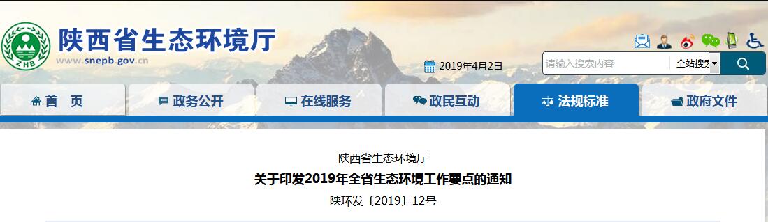陜西省生態(tài)環(huán)境廳關于印發(fā)2019年全省生態(tài)環(huán)境工作要點的通知