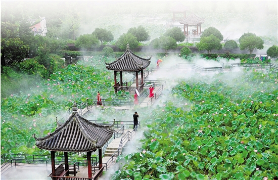 7月16日清晨6時(shí),陽(yáng)光灑向永康市舟山鎮(zhèn)端巖村端頭自然村的荷塘。攝影愛好者徐恭強(qiáng)來(lái)了:“今天5點(diǎn)起床,特意從城里趕過(guò)來(lái)拍照。”看著薄霧慢慢升起,他舉起相機(jī),定格美好瞬間?!白疃鄷r(shí),同時(shí)有180個(gè)攝影師來(lái)拍荷塘!”端巖村黨支部書記俞海從荷塘中央的連廊走來(lái),滿臉自豪。端頭村是個(gè)僅有146戶、398人的小...