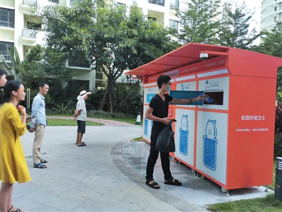 居民正在使用智能垃圾分類柜投放垃圾。符吉茂 攝“既環(huán)保,又能換錢,還能提高我們的垃圾分類意識和分類正確率,一舉多得,這個智能垃圾分類柜值得點(diǎn)贊?!?月26日,家住崖州區(qū)保利·崖州灣小區(qū)居民候東將一個礦泉水瓶投進(jìn)“大胃貓”智能垃圾分類柜后笑著說。日前,為助力三亞市生活垃圾分類工作,建設(shè)“無廢城市”,崖...