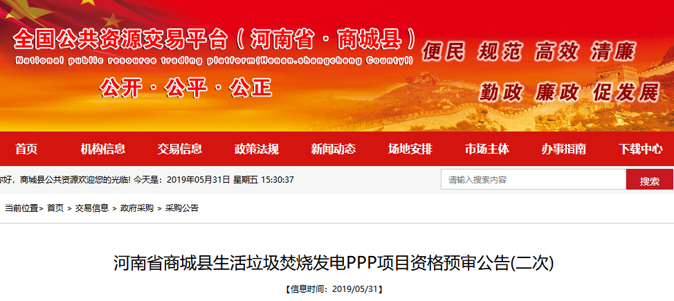 中國環(huán)聯(lián)網(wǎng)獲悉,5月31日,河南省商城縣生活垃圾焚燒發(fā)電PPP項目發(fā)布資格預審公告(二次)。項目概況及采購內(nèi)容項目名稱:河南省商城縣生活垃圾焚燒發(fā)電PPP項目;采購編號:商財采招字(2018)-147號;采購方式:公開招標 ;建設內(nèi)容:建設一座生活垃圾焚燒發(fā)電,一期工程規(guī)模600噸/日,配套一期工程...