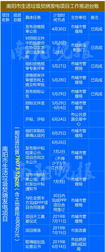 日前,記者從南陽市城市管理局獲悉,南陽市生活垃圾焚燒發(fā)電PPP項目前期推進工作正在有序進行,該項目擬定于7月11左右開工。南陽市生活垃圾焚燒發(fā)電PPP項目概況項目地址:服從南陽市固廢綜合處理生態(tài)產(chǎn)業(yè)園區(qū)(暨南陽市生態(tài)環(huán)保靜脈產(chǎn)業(yè)園區(qū))統(tǒng)一規(guī)劃,本項目建設廠址位于南陽市生態(tài)環(huán)保靜脈產(chǎn)業(yè)園區(qū)內(nèi),園區(qū)位于...