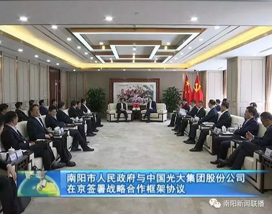 3月15號(hào),南陽市人民政府與中國光大集團(tuán)股份公司在京簽署戰(zhàn)略合作框架協(xié)議。雙方約定,本著友好合作、互利共贏的原則,充分利用各自資源優(yōu)勢,傾力創(chuàng)造有利條件,持續(xù)鞏固擴(kuò)大環(huán)保、金融兩個(gè)重點(diǎn)領(lǐng)域,深入挖掘文旅、康養(yǎng)兩個(gè)重要潛力點(diǎn),積極探索農(nóng)村遠(yuǎn)程醫(yī)療、美麗鄉(xiāng)村建設(shè)兩個(gè)關(guān)鍵創(chuàng)新點(diǎn),不斷推進(jìn)全方位、多領(lǐng)域深層...
