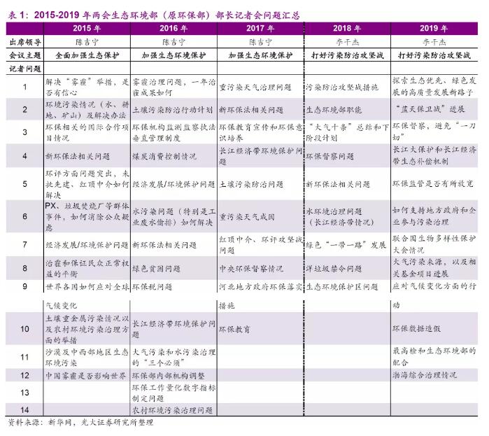 本文要點◆事件:3月5日,2019年政府工作報告發(fā)布(全文點擊:工作報告文字實錄|關于環(huán)保 克強總理這樣說);3月11日下午,生態(tài)環(huán)境部部長李干杰出席十三屆全國人大二次會議記者會,就“打好污染防治攻堅戰(zhàn)”相關問題回答中外記者提問?!粑廴痉乐瘟Χ炔粶p,體制機制改革持續(xù)推進。在今年的“兩會”記者會上,李...