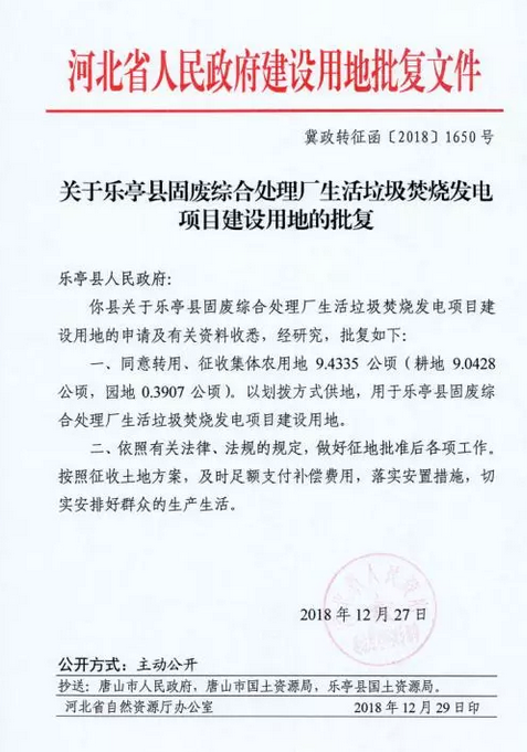 日前河北樂亭縣生活垃圾焚燒發(fā)電項目征收土地和補償安置方案公告公示,具體內容如下:安置費105.9萬/公頃!本公告自發(fā)布之日起,凡在該用地紅線范圍內所有搶建、搶種、搶養(yǎng)的地上附著物一律不予補償!