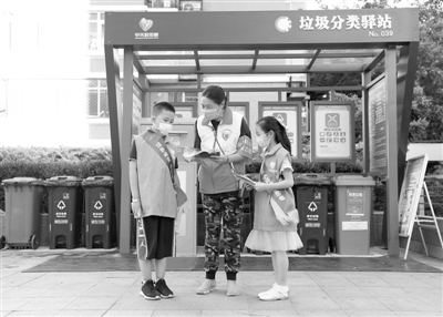 在北京市海淀區(qū)新科祥園社區(qū),社區(qū)工作人員(中)為“綠色明天”環(huán)保志愿小隊隊員李夢鴻一(右)、施柏涵介紹垃圾分類知識。新華社記者 任超攝住建部、生態(tài)環(huán)境部等6部委近日聯(lián)合印發(fā)《綠色社區(qū)創(chuàng)建行動方案》(以下簡稱《方案》),要求綠色社區(qū)創(chuàng)建要與居民自治機制建設、社區(qū)服務體系建設有機結合起來,營造社區(qū)宜居環(huán)...