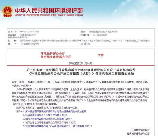 環(huán)保部、住建部公布首批向公眾開放的環(huán)保和污水垃圾處理設(shè)施名單?!靖剑?9個垃圾處理設(shè)施名單、聯(lián)系人及聯(lián)系方式】