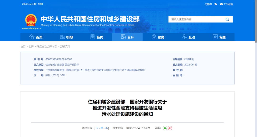 為貫徹落實黨的十九屆五中全會關于實施鄉(xiāng)村建設行動的決策部署,落實中央財經(jīng)委員會第十一次會議關于“全面加強基礎設施建設,構建現(xiàn)代化基礎設施體系”的要求,住房和城鄉(xiāng)建設部、國家開發(fā)銀行印發(fā)《關于推進開發(fā)性金融支持縣域生活垃圾污水處理設施建設的通知》,提出重點支持內容、建立動態(tài)項目儲備庫、優(yōu)先信貸支持、建...