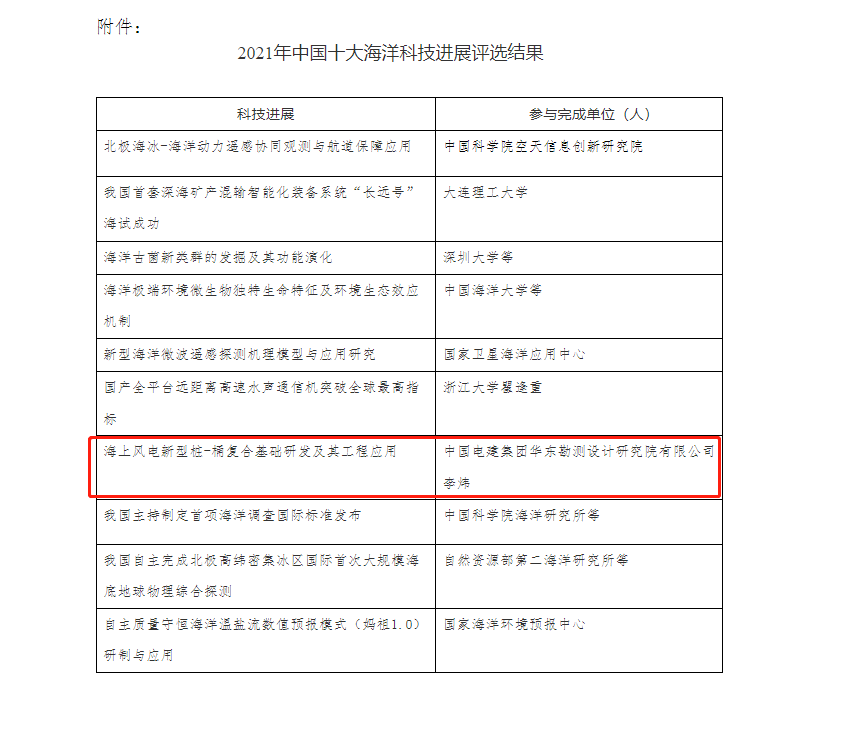 華東院設計研究的海上風電工程應用入選中國十大海洋科技進展!